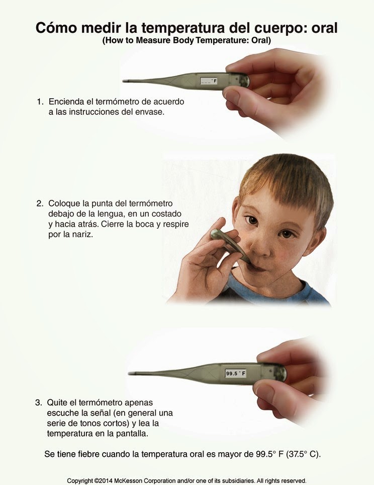 La temperatura se puede medir en diferentes lugares del cuerpo. Debemos tener en cuenta que la temperatura rectal (tomada en el recto, recomendado termómetro punta flexible) es 0.5ºC mayor que la oral (poniendo el termómetro debajo de la lengua) y ésta es 0.5ºC mayor que la axilar.
