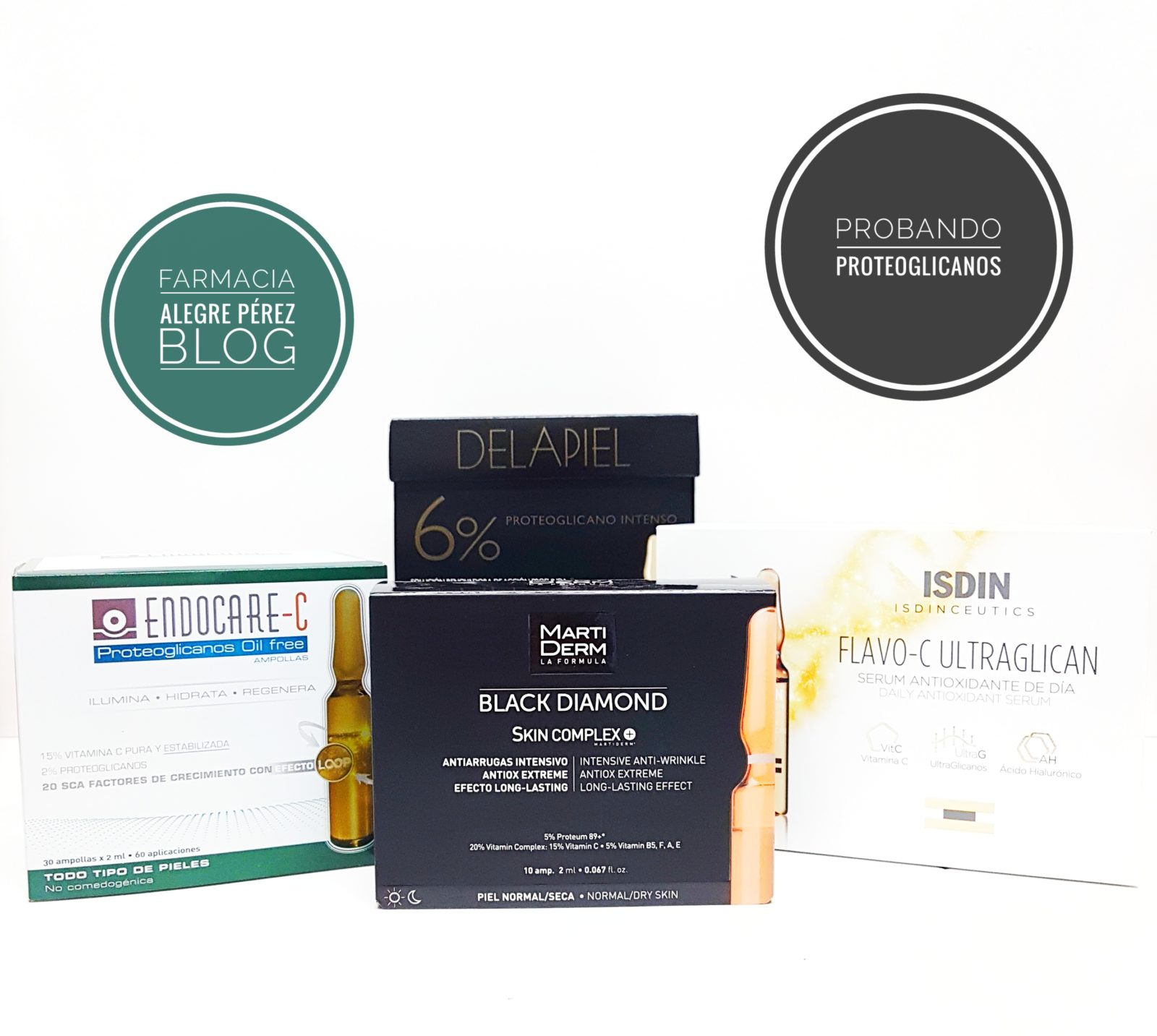 Pero desde entonces hasta ahora, han pasado 3 años, han salido nuevas ampollas de proteoglicanos, bien algunos laboratorios dermofarmacéuticos han decidido incluir este tipo de producto en su vademécum, bien otros laboratorios que ya los fabricaban han cambiado y mejorado su fórmula o bien, han nacido nuevos laboratorios especializados en proteoglicanos. Así pues, vi coherente hacer otra revisión de ellos con probadoras.