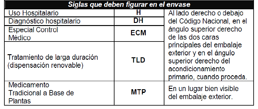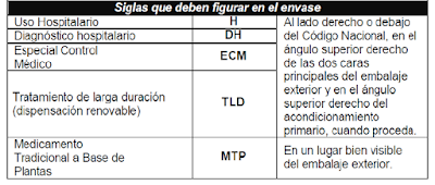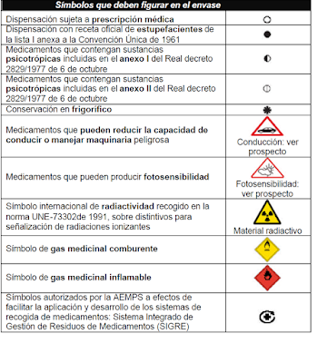 En el Anexo IV del RD 1345/2007 (actualizado RD 109/2010), se indican los símbolos, siglas y leyendas que deben aparecer en el envase de los medicamentos:
