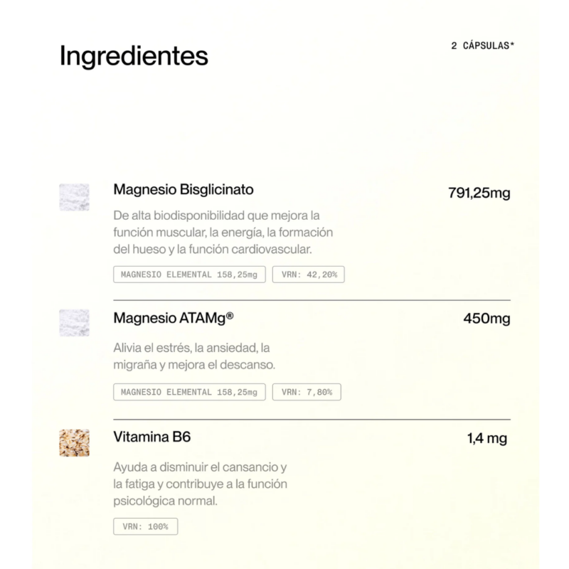 Complemento alimenticio combinación de dos magnesios altamente biodisponibles.