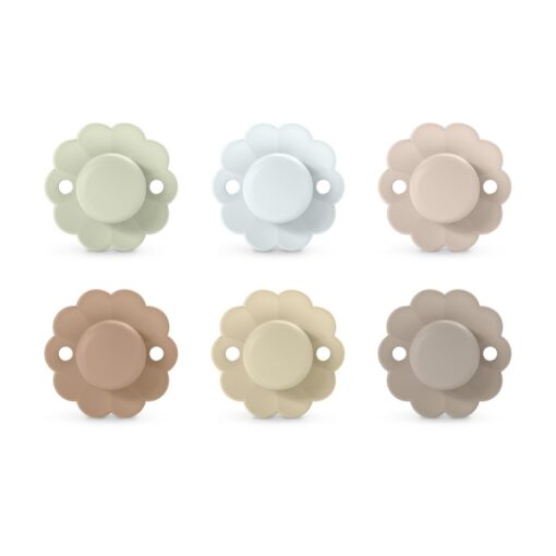 Escudo en forma de flor, ergonómico para que no roce con la nariz ni la barbilla, sin anilla, convexo, anti-roce para evitar las irritaciones de la zona peribucal por la salivación.