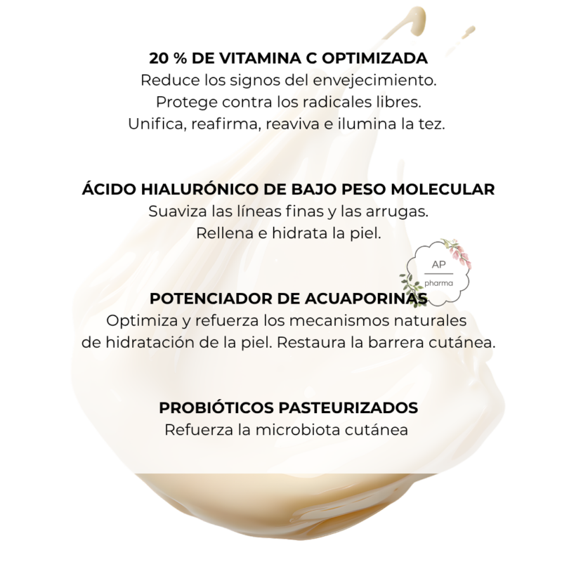 Con un 20% de vitamina C optimizada (equivale a un 17% vitamina C pura)