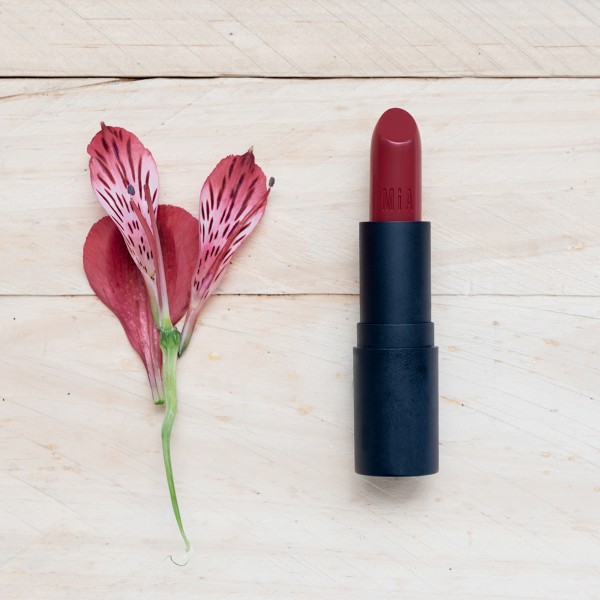 Labial rojo intenso hidratante.